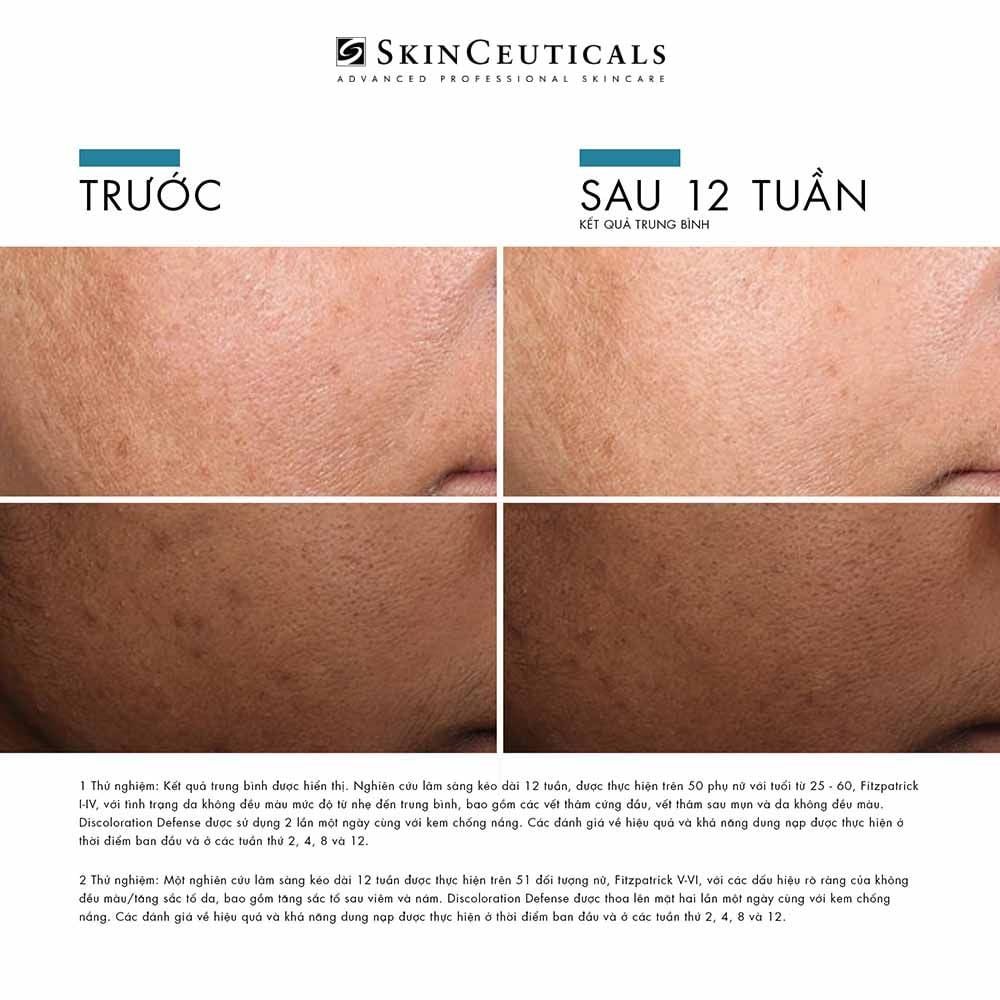 Discoloration Defense là tinh chất đặc trị đốm nâu dùng hằng ngày, có thể kết hợp trong mọi quy trình chăm sóc da. Sản phẩm được chứng minh lâm sàng giúp giảm rõ rệt nhiều dạng rối loạn sắc tố trên mọi tông da, kể cả những tình trạng khó xử lý như mảng nâu cứng đầu hay thâm sau mụn.
