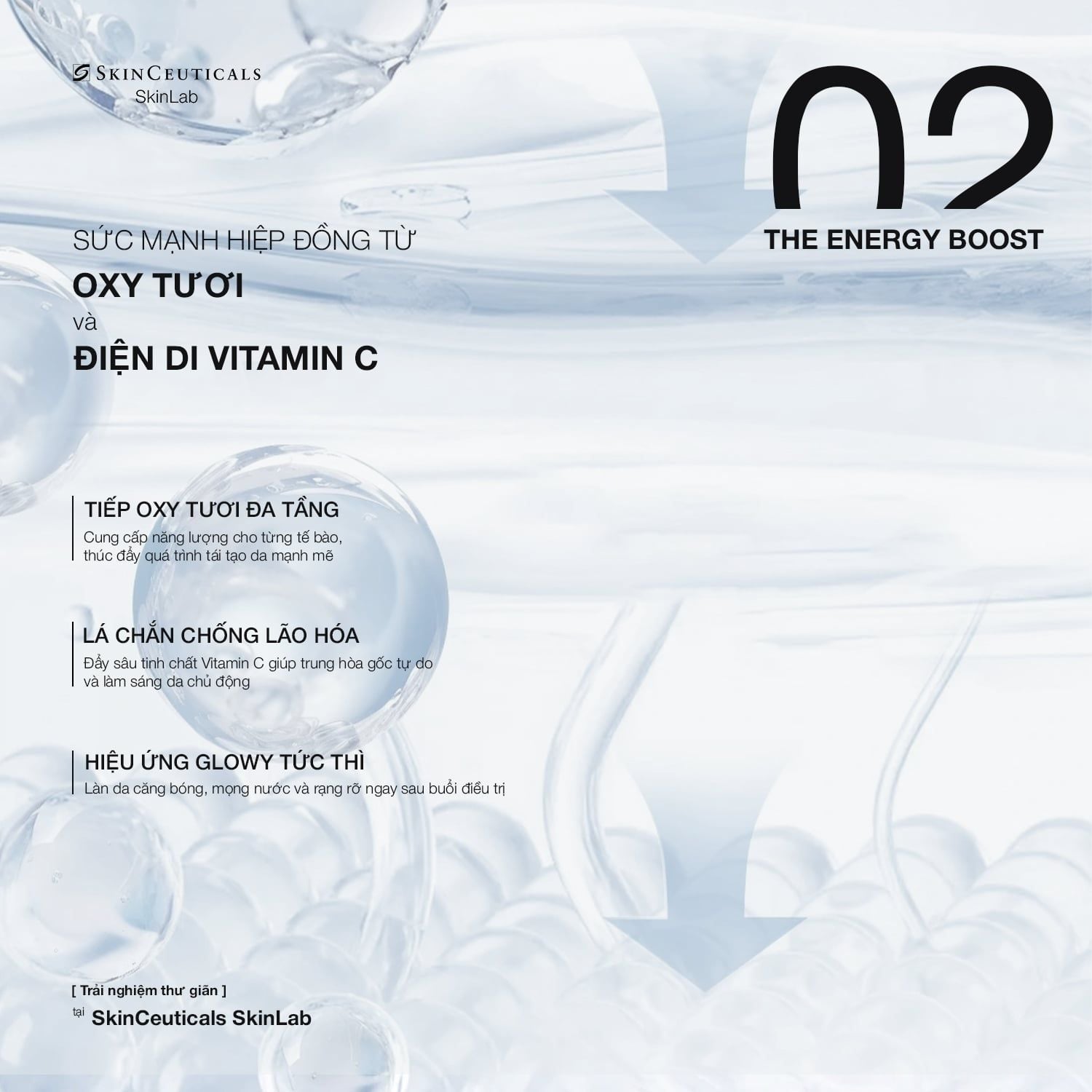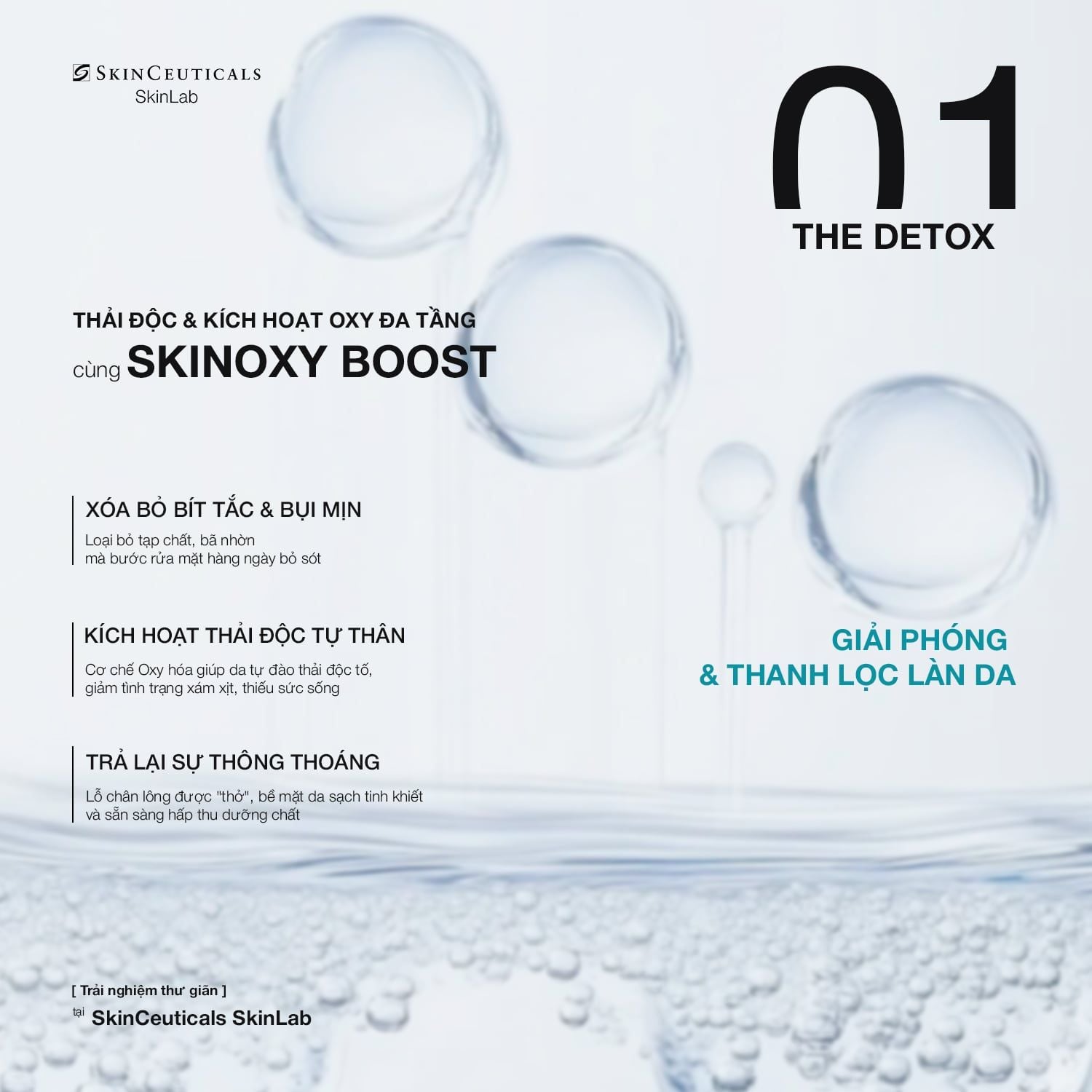 SkinOxy Boost là giải pháp thải độc và đánh thức sức sống làn da, kết hợp quy trình làm sạch sâu đa bước cùng công nghệ quang trị liệu LED. Liệu trình tác động mạnh mẽ giúp thanh lọc triệt để tạp chất tầng sâu, đồng thời tiếp nạp nguồn Oxy tươi và dưỡng chất thiết yếu vào lớp biểu bì, kích hoạt quá trình tái tạo tế bào để khôi phục vẻ rạng rỡ, căng mướt ngay tức thì.