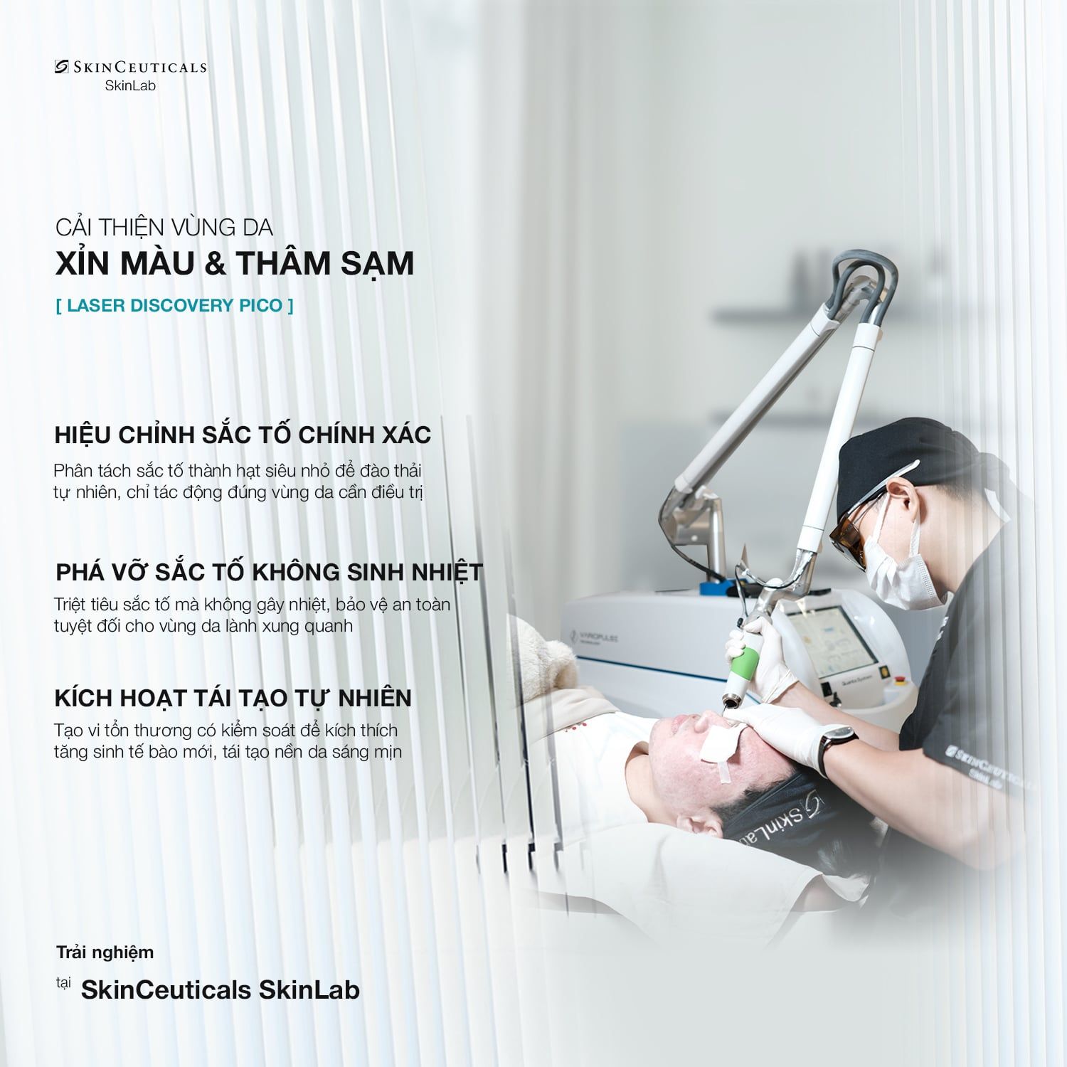 Năng lượng laser phá vỡ sắc tố tập trung, đồng thời tạo vi vi tổn thương có kiểm soát giúp kích hoạt cơ chế tự lành.