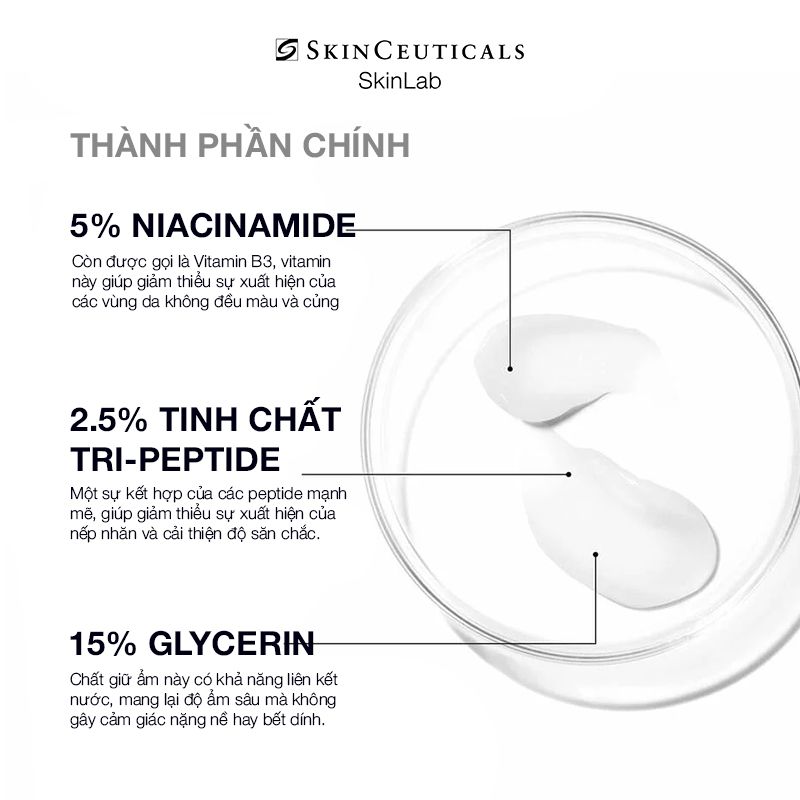 Sản phẩm ứng dụng công nghệ nhũ tương gốc nước độc quyền (patent-pending aqueous emulsion), kết hợp 5% Niacinamide (Vitamin B3) với phức hợp Tripeptide làm săn chắc da và 15% Glycerin tinh khiết. Công thức này giúp giải quyết các biểu hiện lão hóa do ánh sáng (photoaging) – vốn xuất hiện với mức độ khác nhau tùy thuộc vào sinh học da, lối sống, vị trí địa lý, thói quen chống nắng và chế độ chăm sóc da – nhưng lại có tác động cộng hưởng, làm da trông già đi sớm hơn.