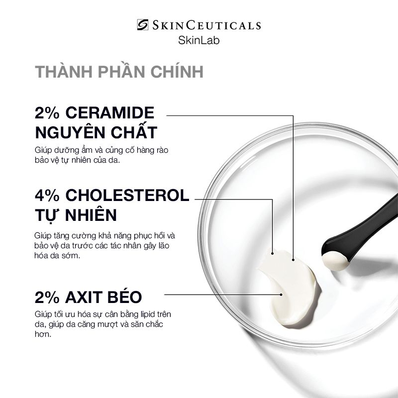 Sản phẩm chứa tỷ lệ lipid tối ưu và đã được cấp bằng sáng chế 2:4:2 gồm: 2% Ceramides 1 & 3 tinh khiết, 4% Cholesterol tự nhiên và 2% Acid béo – công thức đã được chứng minh lâm sàng giúp nuôi dưỡng làn da và cải thiện rõ rệt các dấu hiệu lão hóa.
